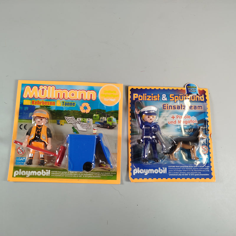 Dieses Playmobil Set enthält zwei originalverpackte Figuren-Sets: einen Müllmann mit Besen, Mülltonne und Sicherheitskleidung sowie ein Polizei-Einsatzteam mit Polizist, Spürhund, Pistole und Megafon. Perfekt für realistische Rollenspiele rund um Stadtsicherheit und Umweltschutz! Beide Sets sind neu und in originaler Verpackung, ideal für Sammler oder als Geschenk. Sicherheitshinweis: Nicht geeignet für Kinder unter 3 Jahren wegen verschluckbarer Kleinteile.