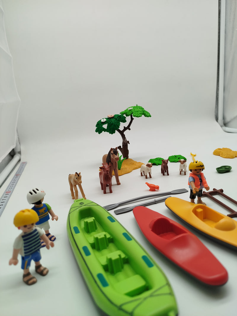 Hol dir das Spieleset von Playmobil im Outdoor- und Bauernhof-Thema! Das Set enthält Tieren, 4 Kindern und 2 Erwachsenen sowie Kajaks, Naturzubehör und Paddel. Perfekt für kreative Rollenspiele und Abenteuer im Kinderzimmer. Gib diesem Spielzeug ein neues Zuhause und unterstütze die Wiederverwendung von Spielwaren. Dieses Spielzeugset ist perfekt, um bestehende Playmobil Welten zu erweitern. Hinweis: Nicht für Kinder unter 3 Jahren geeignet, da Erstickungsgefahr besteht.
