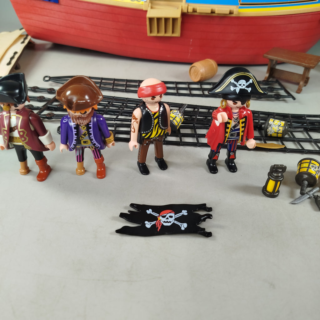 Das Playmobil Großes Piraten-Tarnschiff – 4290 ist ein Playmobil Set mit einem großen Piratenschiff, vier Piratenfiguren und Zubehör wie Segel, Masten, Takelage, Kanonen, Tisch, Fass, Gangplanke, Flagge, Laternen, Schwert, Dolch und Werkzeugen. Das Spielzeug eignet sich zur Förderung von Kreativität und Rollenspiel. Altersempfehlung: 3–5 Jahre. Achtung: Nicht für Kinder unter 3 Jahren geeignet, Erstickungsgefahr durch Kleinteile.