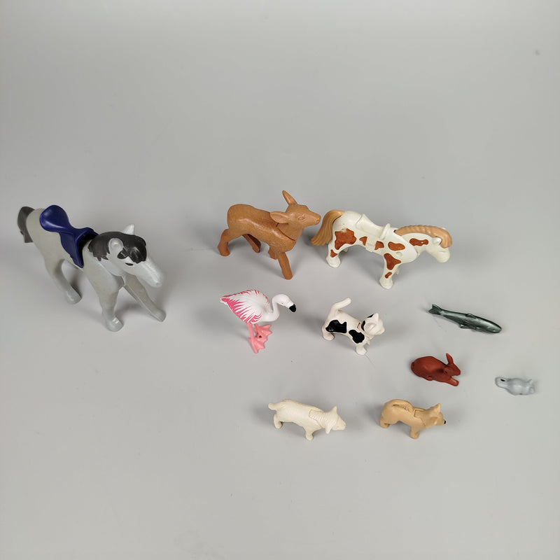 Begib dich auf spannende Abenteuer mit dem Playmobil Tierpark Set! Dieses vielfältige Set bringt eine bunte Auswahl an Tieren direkt in dein Spielzimmer. Mit einem eleganten Pferd, einem niedlichen Flamingo, einem verspielten Hund und vielen weiteren Tieren wie einem Reh und einem Kaninchen ist jede Menge Spielspaß garantiert.Die detailgetreuen und robusten Figuren laden dazu ein, die faszinierende Welt der Tiere zu erkunden und kreative Geschichten zu erfinden. Egal ob Bauernhof, Safari oder ein Abenteuer im Wald – dieses Set bietet endlose Möglichkeiten für fantasievolles Spielen.Eigenschaften:Altersempfehlung: Ab 4 JahrenZustand: Sehr gut erhaltenEnthaltene Tiere: Pferd, Reh, Hund, Flamingo, Kalb, Schaf, Fisch, Kaninchen und MausIdeal kombinierbar mit anderen Playmobil-Sets für noch mehr SpielspaßMit diesem Tierpark Abenteuer bringst du die Natur ins Kinderzimmer und schaffst eine aufregende Spielwelt für Kinder, die Tiere lieben und gerne eigene Geschichten erfinden!