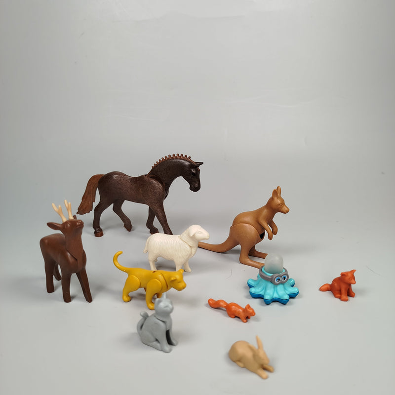 Hol dir dieses abwechslungsreiche Playmobil Tierset und erlebe spannende Abenteuer mit einer Vielfalt an Tieren! Das Set enthält eine bunte Mischung, darunter ein Pferd, ein Känguru mit Baby, ein Reh, ein Schaf, einen Hund, eine Katze, einen Oktopus, Eichhörnchen und weitere niedliche Tiere. Diese detailreichen Figuren sind ideal für fantasievolle Rollenspiele und lassen sich mühelos in verschiedene Playmobil-Szenarien integrieren, sei es auf dem Bauernhof, im Wald, im Zoo oder am Strand.Gefertigt aus robustem Kunststoff, sind die Figuren langlebig und perfekt für Kinder ab 4 Jahren geeignet. Sie lassen sich wunderbar mit anderen Playmobil-Sets kombinieren und fördern kreatives Spielen sowie das Erzählen von Abenteuergeschichten.Eigenschaften:Altersempfehlung: Ab 4 JahrenZustand: Sehr gut erhaltenVerschiedene Tiere: Pferd, Känguru, Reh, Schaf, Hund, Oktopus, Katze und mehrIdeal für kreative und vielseitige Playmobil-WeltenMit diesem Playmobil Tierset können Kinder ihre eigene fantasievolle Tierwelt gestalten und stundenlangen Spielspaß genießen. Perfekt für kleine Tierliebhaber und Entdecker!