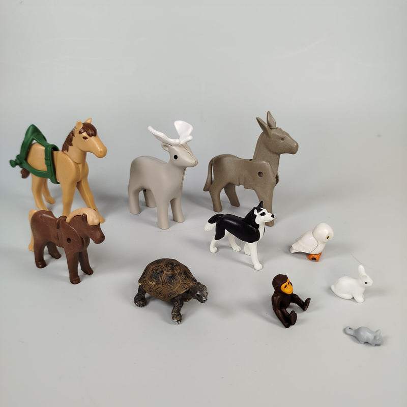 Hol dir dieses vielseitige Playmobil Tierset und erschaffe spannende Abenteuer auf dem Bauernhof, im Wald oder sogar in exotischen Landschaften! Das Set umfasst eine bunte Mischung von Tieren, darunter ein Pferd mit Sattel, einen Elch, einen Esel, einen Hund, eine Eule, eine Schildkröte und weitere niedliche Figuren. Diese detailgetreuen Tiere lassen sich perfekt in unterschiedliche Playmobil-Szenarien integrieren und bieten zahlreiche Möglichkeiten für kreatives Spielen.Die Figuren sind aus robustem Kunststoff gefertigt und ideal für Kinder ab 4 Jahren geeignet. Sie lassen sich mit weiteren Playmobil-Sets kombinieren, um neue Geschichten und Abenteuer zu erleben.Eigenschaften:Altersempfehlung: Ab 4 JahrenZustand: Sehr gut erhaltenVerschiedene Tiere: Pferd, Elch, Esel, Hund, Schildkröte, Eule und mehrPerfekt zur Ergänzung von Playmobil-Bauernhof- oder WaldszenenMit diesem Playmobil Tierset können Kinder ihre Fantasie entfalten und zahlreiche Abenteuer mit den unterschiedlichsten Tieren erleben. Perfekt für kleine Tierliebhaber und Entdecker!
