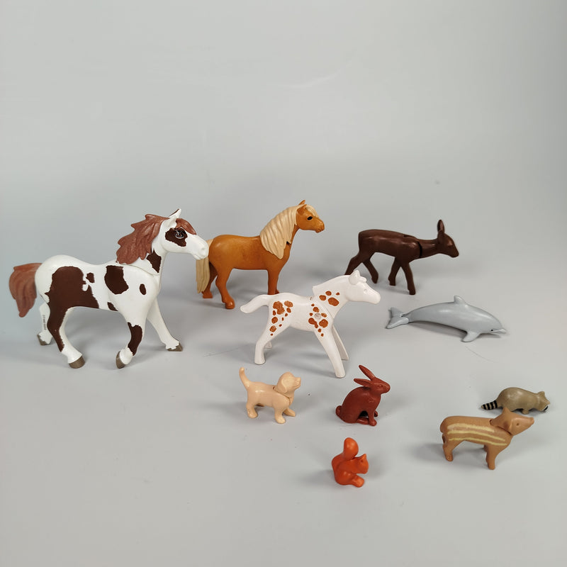 Hol dir dieses bunte Playmobil Tierset und erschaffe eine spannende Tierwelt voller Vielfalt! Das Set enthält eine Mischung aus Bauernhoftieren, Wildtieren und Haustieren, darunter Pferde, Fohlen, einen Esel, einen Delfin, einen Hund, Kaninchen und mehr. Es bietet viele Möglichkeiten für fantasievolle Rollenspiele und passt perfekt zu einer Vielzahl von Playmobil-Szenarien – vom Bauernhof über den Wald bis hin zum Meer.Die Figuren sind robust und detailgetreu gestaltet, was sie ideal für Kinder ab 4 Jahren macht. Sie lassen sich wunderbar mit anderen Playmobil-Sets kombinieren, um kreative Geschichten und Abenteuer zu erleben.Eigenschaften:Altersempfehlung: Ab 4 JahrenZustand: Sehr gut erhaltenVerschiedene Tierarten: Pferde, Fohlen, Esel, Hund, Delfin, Kaninchen und mehrVielseitig einsetzbar für verschiedene Playmobil-WeltenMit diesem Playmobil Tierset können Kinder eine lebendige und vielseitige Tierwelt gestalten und stundenlangen Spielspaß genießen. Perfekt für kleine Tierfreunde und Playmobil-Sammler!
