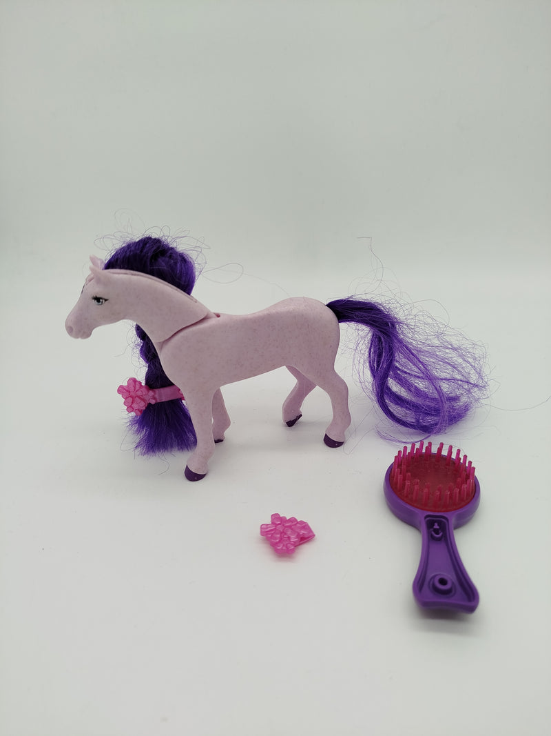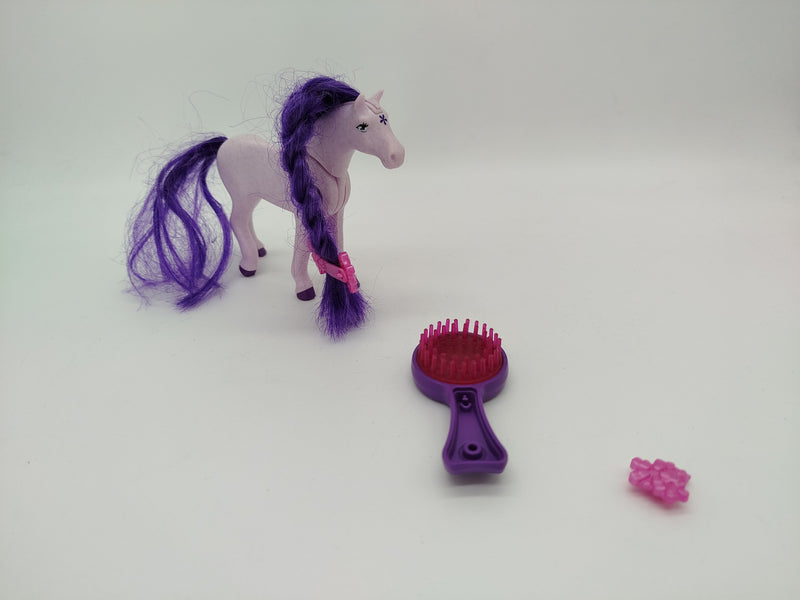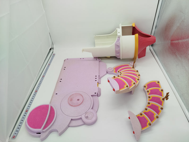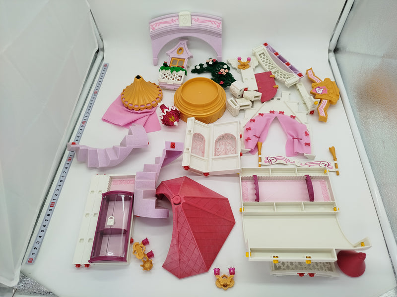 Dieses Playmobil Prinzessinnenschloss (5142-A) enthält ein Prinzenpaar, ein Pferd mit Zubehör, Bodenplatten, Schlosswände, Türme, Dächer, geschwungene Treppen und dekorative Elemente. Ergänzt wird das Set durch detailreiche Balkone, einen Teich und verschiedene Pflanzen. Die Vollständigkeit des Prinzessinnenschlosses kann nicht garantiert werden, da Originalverpackung und Anleitung fehlt. Dieses Playmobilset ist in einem sehr guten, gebrauchten Zustand, nur an einem Spiegel ist eine kleine Kante abgebrochen (siehe Foto). Alles in allem perfekt, um bestehende Prinzessinnenwelten durch ein Schloss zu erweitern. Gib diesem Spielzeug ein neues Zuhause und unterstütze die Wiederverwendung von Spielsachen. Hinweis: Nicht geeignet für Kinder unter 3 Jahren aufgrund verschluckbarer Kleinteile.