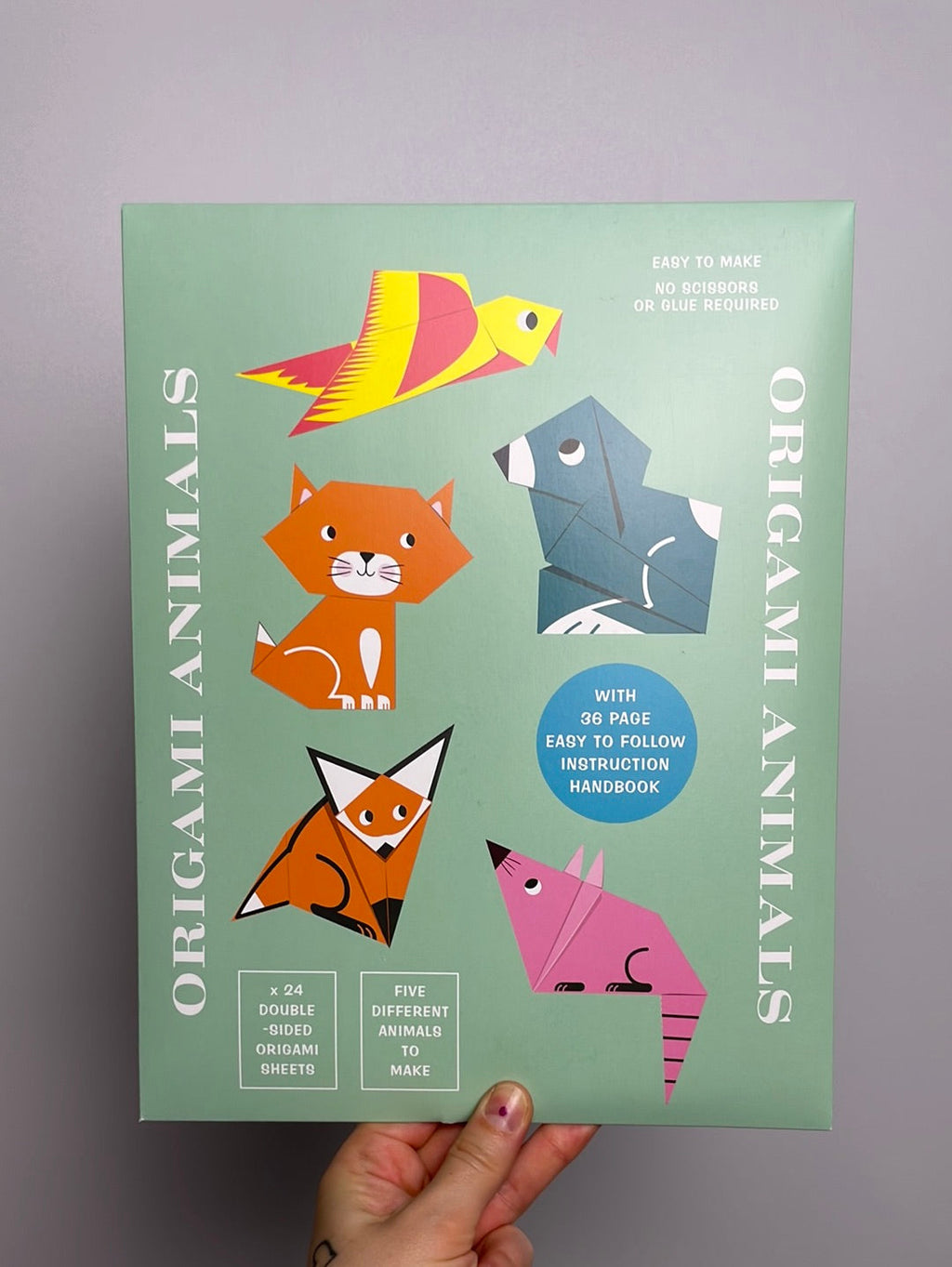 Dieses wunderbare Origami-Set enthält 24 Blatt bedrucktes Papier – genug, um eine ganze Familie aus Füchsen, Mäusen, Papageien, Katzen und Hasen zu basteln. Das Kit enthält:
