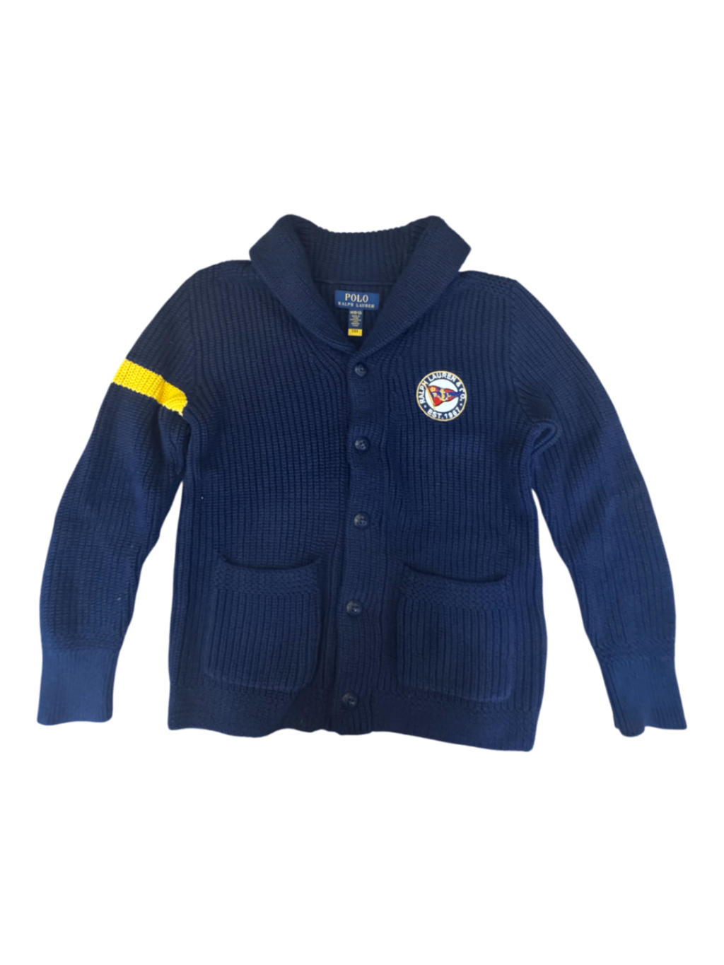 Elegante, dunkelblaue Strickjacke der Marke Polo Ralph Lauren. Das weiche Material sorgt für angenehmen Komfort und Wärme, perfekt für die kühleren Tage. Mit seinem klassischen Design und einem tollen Logo-Patch ist dieses Kleidungsstück ein echtes Highlight, das jedes Outfit aufwertet. Die robusten Knöpfe und die pflegeleichte Wollmischung garantieren Langlebigkeit und Freude beim Tragen.