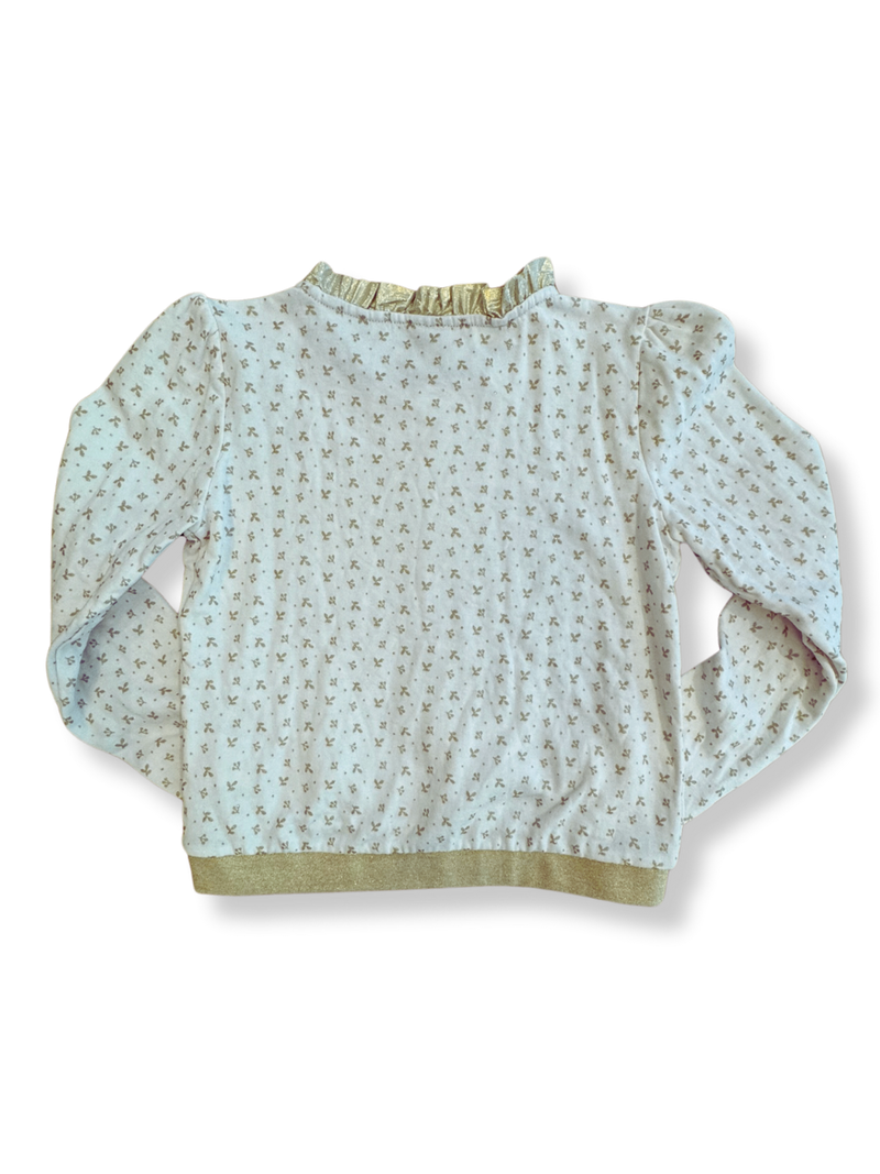 Ein festlicher Pullover mit goldenem Blumenmuster. Das zarte Design macht ihn vielseitig kombinierbar. Das weiche Material sorgt für angenehmen Tragekomfort.