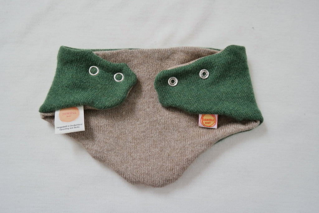 Durch Upcycling rettet Jawoll Baby das wertvolle Material Wolle und macht es wieder nutzbar, wie hier als kuscheliger und super weicher Schal für Herbst und Winter.