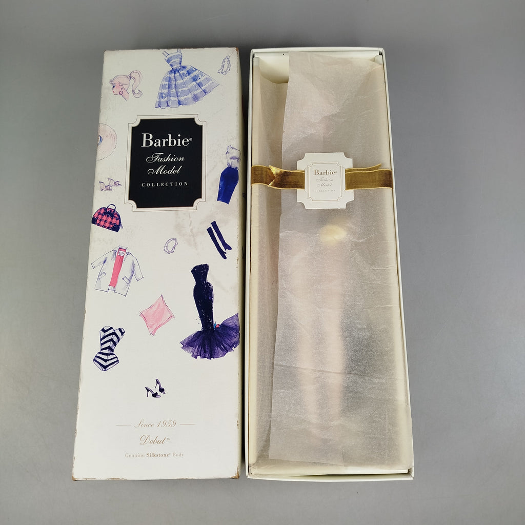 Hol dir die elegante Barbie aus der Fashion Model Collection – Debut Edition von Mattel. Diese exklusive Sammlerpupe aus der Gold Label Serie besitzt einen echten Silkstone-Körper und feiert 50 Jahre Barbie-Modegeschichte seit 1959. Sie kommt in Originalverpackung und befindet sich in neuwertigem Zustand. Eine stilvolle Ergänzung für jede Barbie-Sammlung und ein Stück Spielzeuggeschichte. Hinweis: Sammlerartikel, nicht als Kinderspielzeug geeignet.