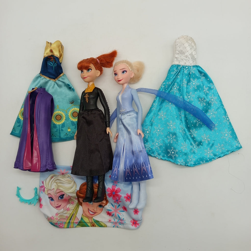 Hol dir das bezaubernde Puppen-Set mit zwei Puppen, sechs Kleidungsstücken und einer kleinen Krone. Die detailreichen Outfits zeigen verspielte Muster und florale Designs. Perfekt für modische Rollenspiele und kreative Abenteuer. Verpackung fehlt, aber das Spielzeug ist in sehr gutem gebrauchten Zustand. Gib diesen Puppen ein neues Zuhause und fördere fantasievolles Spielen.