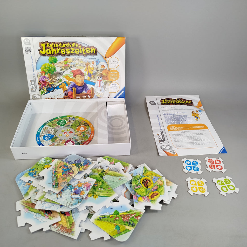 Ravensburger TipToi Buch „Reise durch die Jahreszeiten – 00514“ ist ein audiodigitales Lernspiel, bei dem verschiedene Aktivitäten rund um Frühling, Sommer, Herbst und Winter erkundet werden. Das Spiel fördert Konzentration und Wissen über die Jahreszeiten. Der benötigte tiptoi Stift ist separat erhältlich und nicht enthalten. Altersempfehlung: 3–5 Jahre. Achtung: Nicht für Kinder unter 3 Jahren geeignet, Erstickungsgefahr wegen verschluckbarer Kleinteile.