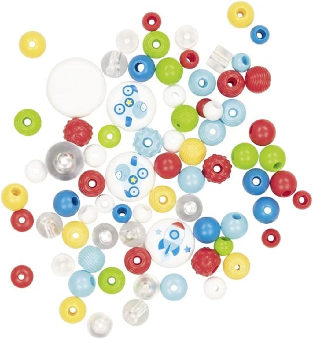 Produktbeschreibung Perle Ø = 1,0 - 2,0 cm, Kunststoff, ca. 500-teilig, inkl. 2 verschieden farbige Schnüre Warnhinweise 3+