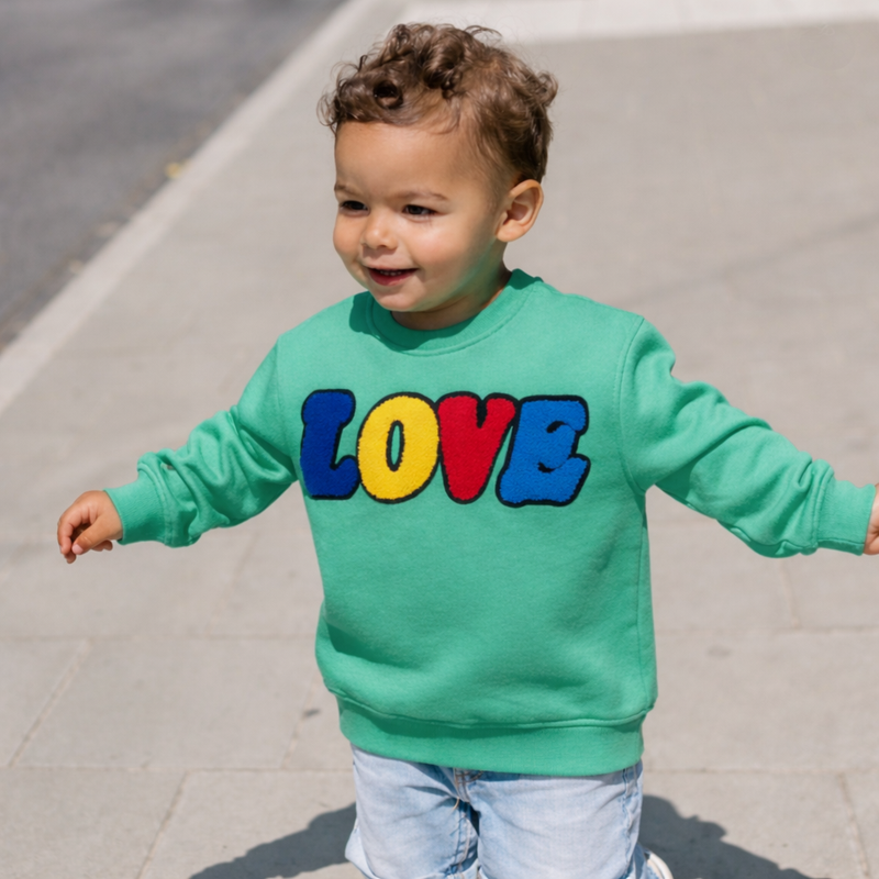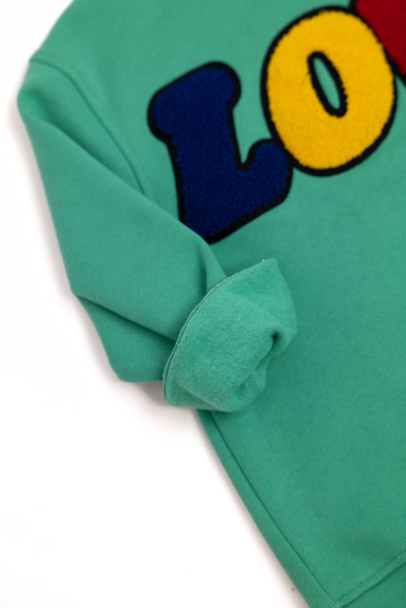 LOVE - We love LOVE. Which is why we decided to create a sweatshirt to spread that LOVE. Always a classic and ready to brighten your day or anyone who sees you wearing it. Soft towel embroidery makes us fall even more in love with this sweatshirt.