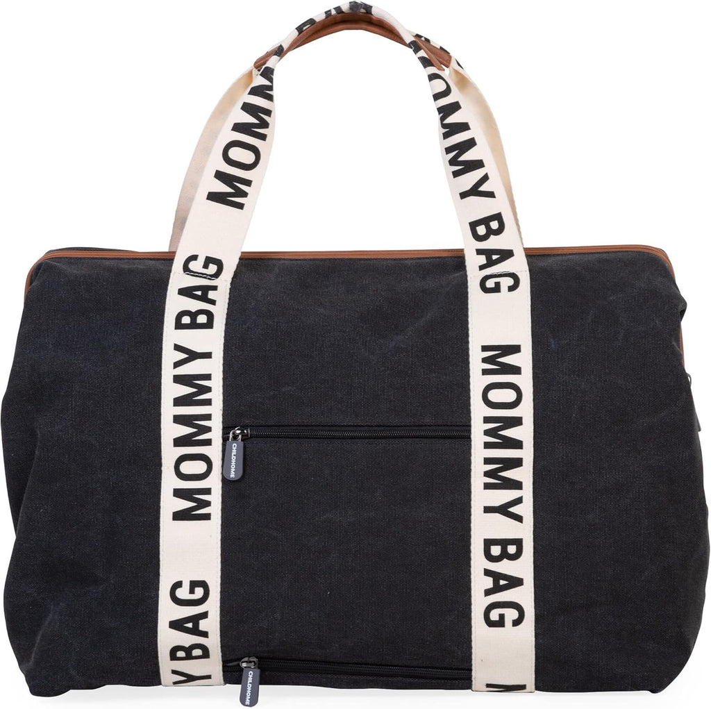 CHILDHOME Mommy Bag Signature Umstandstasche mit Wickelunterlage Die neue exklusive Kollektion von CHILDHOME hat Mommy Bag überall geschrieben! Sie hat alle zuverlässigen Eigenschaften der Original Mommy Bag (viel Stauraum, praktische Verschlüsse, mehrere Taschen, Kühltasche...) kombiniert mit einem neuen und modernen Design. Was macht diese Tasche einzigartig? Lederdetails, Canvas-Gürtel, wasserabweisender Stoff, hochwertige Reißverschlüsse und modernes und sportliches Design. Perfekt für jeden Anlass. Die großen Abmessungen der Mommy Bag (55 x 35 x 40 cm) machen sie zur idealen Tasche für den Einsatz als Krankenhaustasche, Kindergartentasche und Wickeltasche, aber auch als Reisetasche, Sporttasche oder Wochenendtasche. Tipp: Legen Sie die Tasche nicht auf eine raue Oberfläche, um Gebrauchsspuren zu vermeiden. Achten Sie auch auf scharfe Gegenstände. Volumen: 58 Liter Maximale Tragkraft: 5 kg. Die einzige originale Mommy Bag im belgischen Design seit 2016. Wichtige Vorteile auf einen Blick: Modische Tasche für stolze (zukünftige Mütter). Original belgisches Design Perfekt für jeden Anlass. Kann als Wickeltasche, Stilltasche, Reisetasche, Strandtasche, Krankenhaustasche, Wochenendtasche usw. verwendet werden. Verschiedene Fächer und elastische Bänder halten die Tasche leicht aufgeräumt. Spezieller Reißverschluss, der leicht geöffnet bleibt. Leicht zu reinigen und wasserdicht. Standard enthalten. Handtasche von Mami. Wickelauflage Wichtige Eigenschaften: Maße: 55 x 30 x 40 cm. Material: 65 % Baumwolle, 35 % Polyester. Futter: 100 % Nylon. Griffe: 100% Kunstleder Norm EN: REACH, EN 14362, EN 17234. Pflege: Nicht maschinenwaschbar. Mit einem feuchten Tuch abwischen und sofort trocknen.