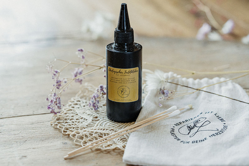 Dieser Textilkleber ist auf latexbasis und entspricht ökologischen Standards. Dennoch sollte er mit Vorsicht verwendet werden, um gesundheitliche Risiken zu vermeiden.