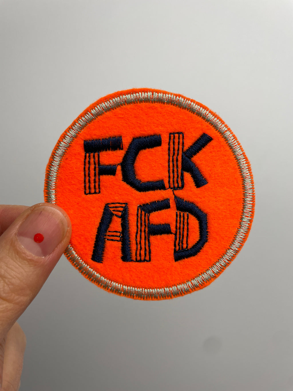 FCK AFD Patches mit einem Durchmesser von ca. 7 cm. Die FCK AFD Flicken aus Stickfilz mit Statement sind auch ideal als Hosenflicken und Knieflicken geeignet!