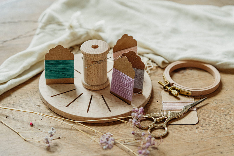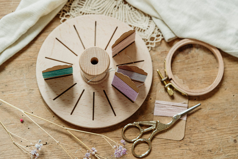 Diese Stickgarnhalterung wird dir deinen Stickalltag versüßen, denn du hast so immer alle Garnkarten deines aktuellen Projektes an einem Ort, kannst deine Schere mittig einstecken und deine Nadel an den vorgesehenen Magneten hängen.