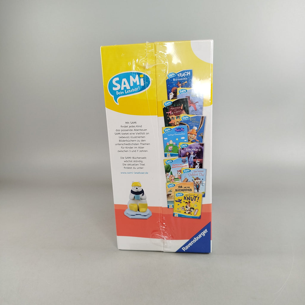 Hol dir das SAMI Lesebär Starter-Set von Ravensburger und entdecke interaktive Vorleseabenteuer! Das Set enthält den SAMI Lesebären mit integriertem Akku, das Buch „PAW Patrol: Die Jagd nach dem Gold“, ein USB-Ladekabel und eine Anleitung. Der Lesebär verfügt über WLAN und Kopfhöreranschluss. Gib diesem Spielzeug ein neues Zuhause und fördere spielerisch das Lesenlernen. Das Set ist neu, originalverpackt und vollständig.