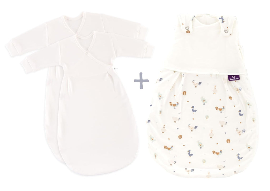 Hochwertiger Babyschlafsack: kein Wärmestau dank doppelt regulierbarer Belüftung, garantiert antimon- und schadstoffgeprüft, gesundes Schlafklima durch hochwertige Naturfaser Tencel, inklusive Bärchen-Kleiderbügel, mitwachsend durch verstellbare Träger (mit Herz-Druckknöpfen), viel Strampelfreiheit, umlaufender Reißverschluss zum einfachen Wickeln - im SET mit zwei passenden Innenschlafsäcken.