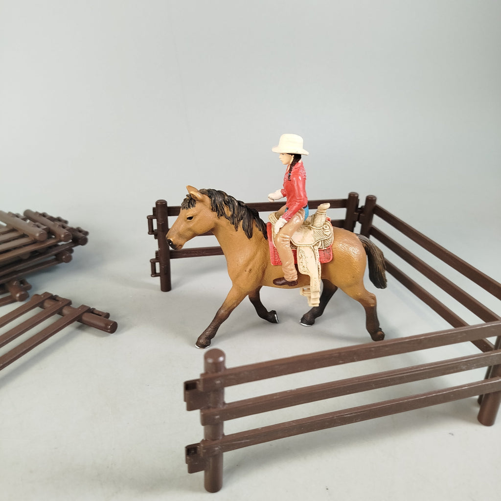 Hol dir das Schleich Pferdeset mit Reiter und Zaunteilen – 42007! Dieses detailreiche Set lädt zu realistischen Reitabenteuern ein. Das Spielzeug besteht aus hochwertigem Kunststoff und zeigt leichte Gebrauchsspuren, die die Funktion nicht beeinträchtigen. Die Originalverpackung fehlt. Gib diesem schönen Set ein neues Zuhause und fördere spielerisch Kreativität und Fantasie beim Spielen.