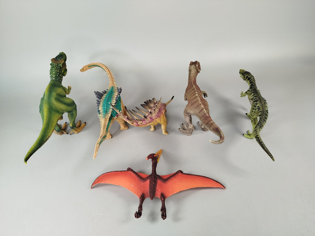 Hol dir das Dinosaurier Figuren-Set mit 6 detailreichen Urzeittieren der Marke Schleich in verschiedenen Farben. Enthalten sind T-Rex, Stegosaurus, ein gepanzerter Dinosaurier, ein weiterer Theropode, ein Raptor-ähnlicher Dinosaurier und ein Pterosaurier mit ausgebreiteten Flügeln. Die Figuren sind ca. 10–15 cm groß und bestehen aus robustem Kunststoff. Das Set ist in einem sehr guten gebrauchten Zustand, die leichte Abnutzung der Komponenten zeigt, mit diesen Spielsachen wurde gerne gespielt. Gib diesem Spielzeug ein neues Zuhause und unterstütze die Wiederverwendung von Spielwaren. Verpackung oder Anleitung sind nicht vorhanden. Hinweis: Nicht für Kinder unter 3 Jahren geeignet, da Kleinteile verschluckt werden können.