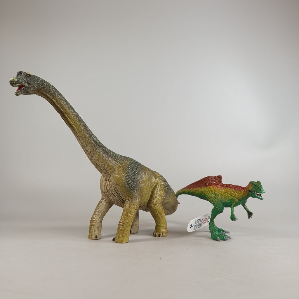 Hol dir das Schleich Dinosaurier-Set mit einem detailreichen Brachiosaurus und einem Dimetrodon mit farbenfrohem Segel. Die beiden Figuren bestehen aus robustem Kunststoff und sind liebevoll bemalt. Ideal für kleine Dino-Fans und Sammler realistischer Tiermodelle. Das Set ist vollständig und befindet sich in einem sehr guten gebrauchten Zustand. Verpackung fehlt. Hinweis: Nicht für Kinder unter 3 Jahren geeignet, da Kleinteile verschluckt werden können.