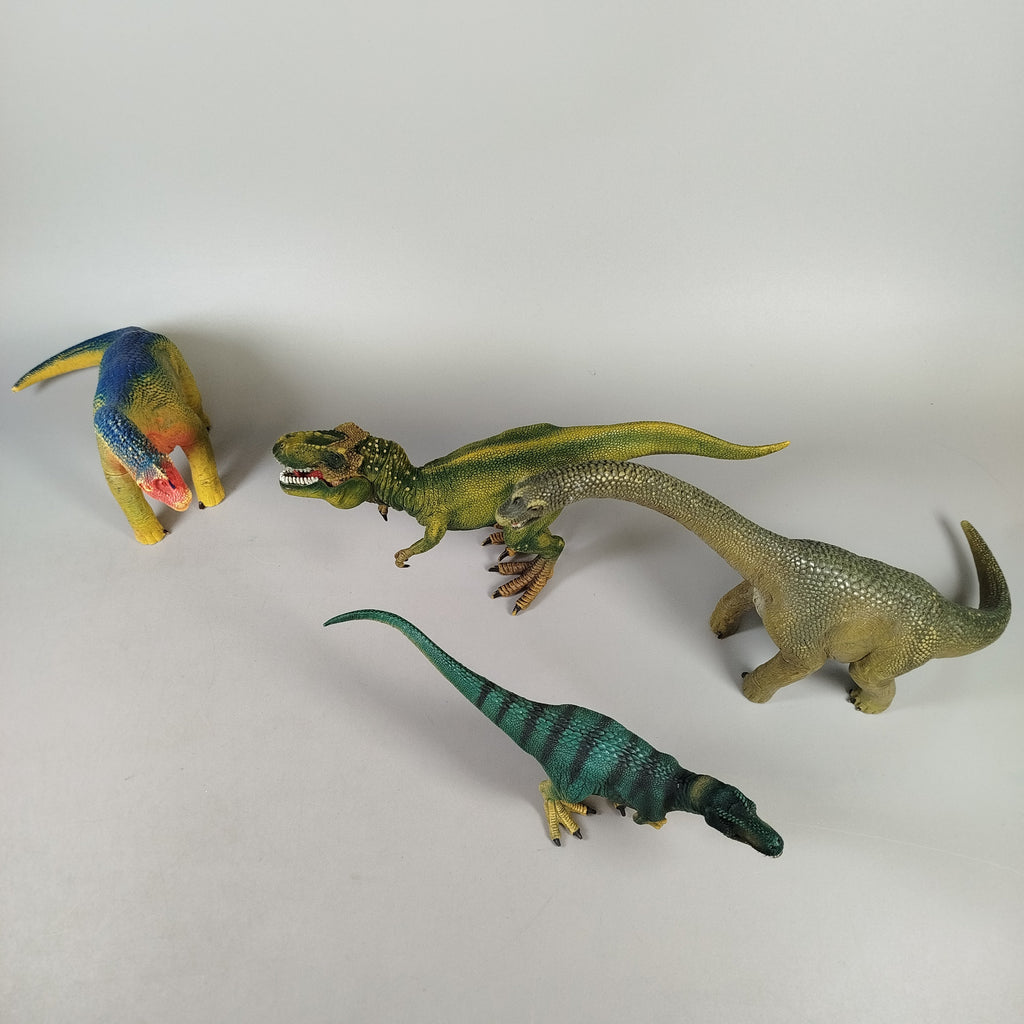 Hol dir das Schleich Dinosaurier-Set mit vier detailreichen, handbemalten Figuren. Enthalten sind ein gelb-orangefarbener Sauropode, ein grüner T-Rex, ein grau-grüner Langhals und ein kleiner Theropode in Blaugrün. Die Figuren zeigen leichte Gebrauchsspuren, sind aber in sehr gutem Zustand. Verpackung und Anleitung fehlen. Gib diesen robusten Schleich-Dinos ein neues Zuhause und lass prähistorische Abenteuer lebendig werden!