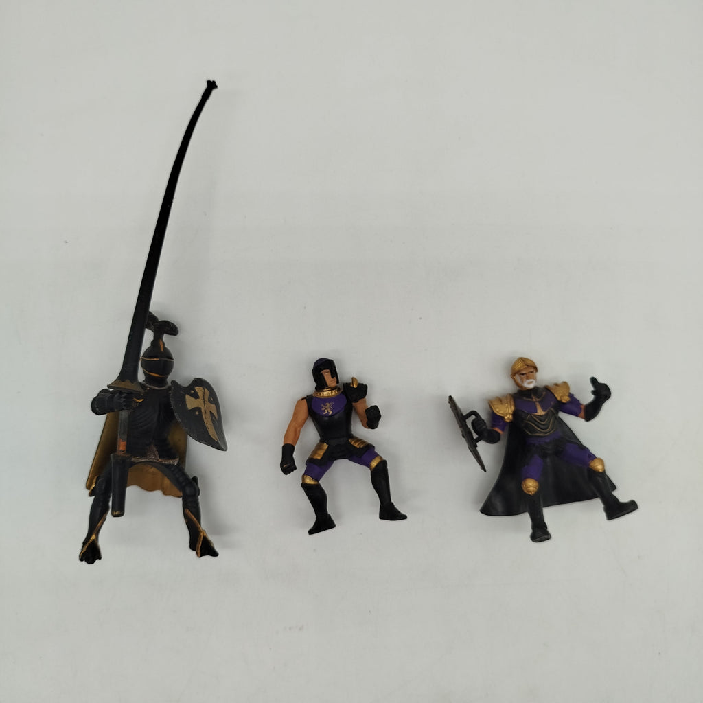 Hol dir dieses Ritterfigurenset der Marke Schleich und tauche in mittelalterliche Abenteuer ein! Dieses Set enthält drei detailreiche Ritterfiguren in schwarzer, goldener und violetter Rüstung. Eine Figur trägt ein großes Schwert und einen gold-schwarzen Schild, eine weitere einen Löwenaufdruck und die dritte glänzt mit goldenen Schulterrüstungen und Umhang. Die Reittiere fehlen, und es sind leichte Gebrauchsspuren wie Kratzer und Farbabrieb sichtbar. Die Figuren sind ca. 10–12 cm groß und kommen ohne Originalverpackung. Das Spielzeug befindet sich in gutem, gebrauchten Zustand. Hinweis: Enthält Kleinteile, nicht geeignet für Kinder unter 3 Jahren aufgrund von Erstickungsgefahr.