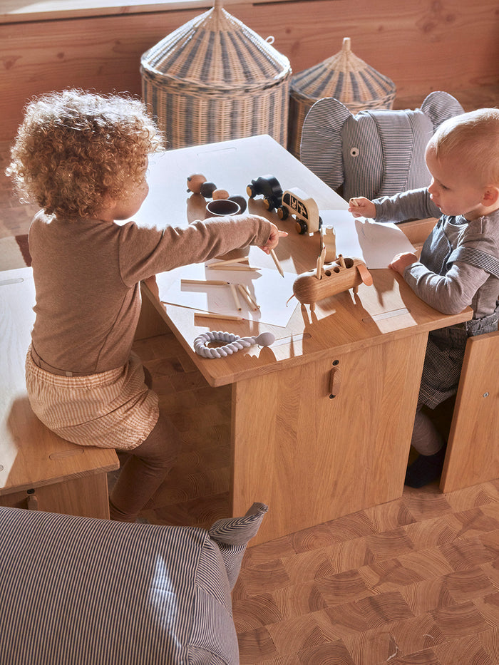 Organize the child's desk with the Eddie Pencil Holder in oak. It will keep pencils in order while being a fun and cute statement in the kid's room.The pencil holder can also be used for other office supplies - only the imagination sets limits..Style no. M107201 Color: Nature Material: 100% Oak Dimensions: H6,5 x L19,5 x W7 cm