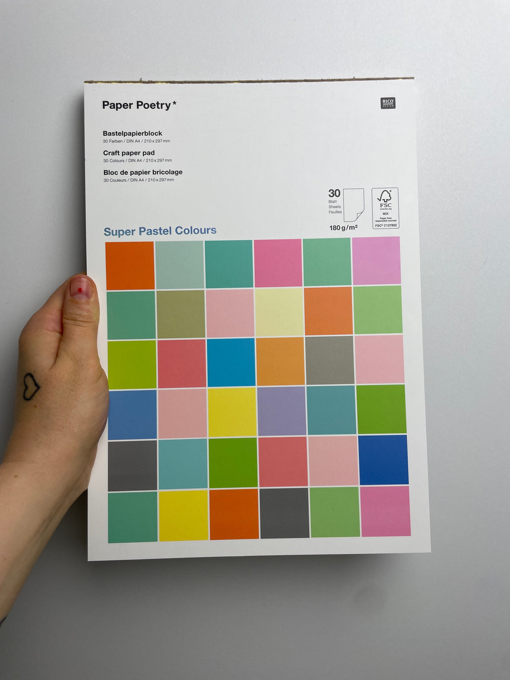 Die große moderne Farbvielfalt dieses Bastelpapierblocks bietet eine Riesenauswahl für unterschiedlichste Bastelprojekte. Die hochwertigen Bögen aus durchgefärbtem Papier in verschiedenen Pastellfarben warten darauf, in unzählige Kreativprojekte verwandelt zu werden. Die Papierstärke 180 g/m² eignet sich optimal für zwei- und dreidimensionale Bastelarbeiten.