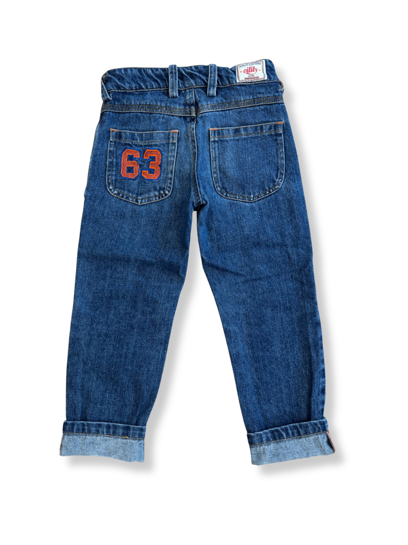 Diese klassische Jeanshose bietet einen lässigen Look mit abgenutztem Denim-Finish. Der lockere Schnitt sorgt für Komfort und Bewegungsfreiheit, perfekt für den Alltag. Die umgekrempelten Hosenbeine setzen einen modernen Akzent.