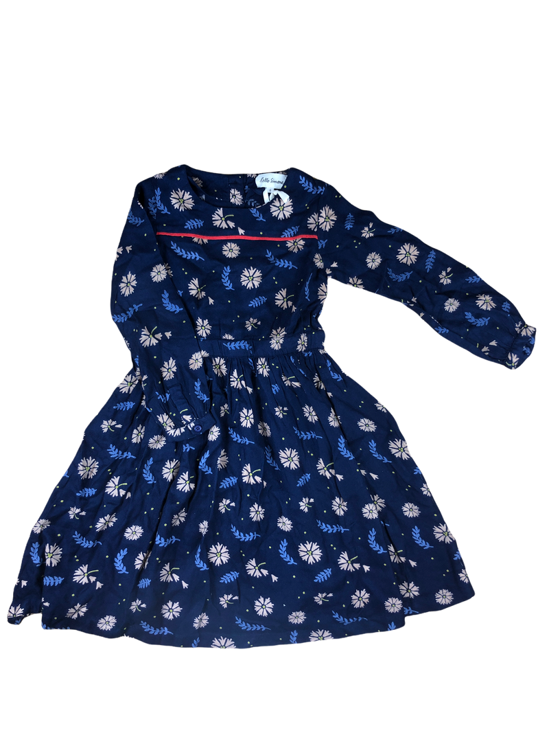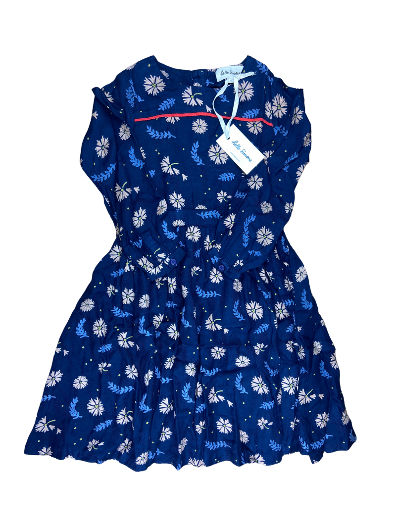 Schönes, weiches Blumenkleid von Hello Simone mit roter Ziernaht auf der Brust und Knöpfen am Rücken.