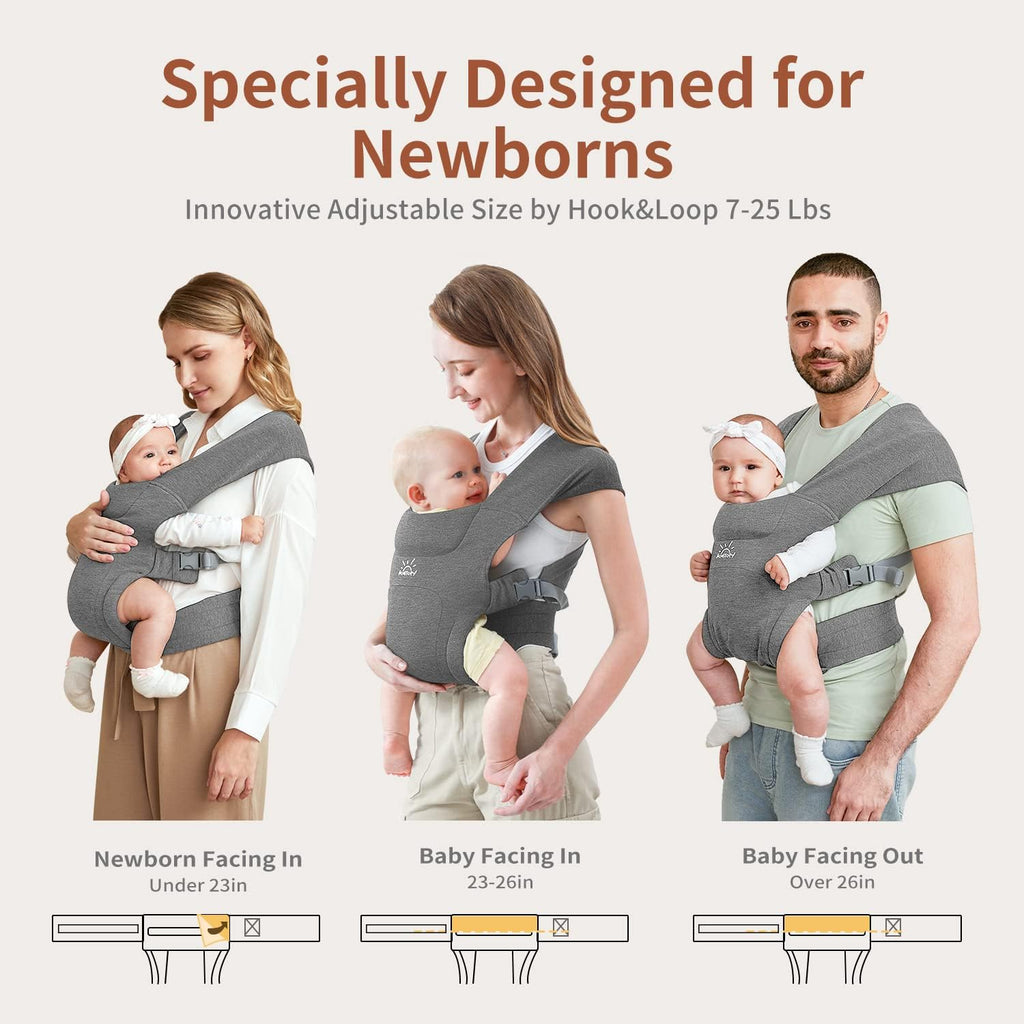 Babytrage: bequem für Neugeborene. Momtory bietet eine Win-Win-Transportlösung für Neugeborene mit einem strukturellen Design. Genießen Sie die Hände frei mit der Momtory Babytrage Innovatives Klettverschluss-Design für einfache Anpassung der Größe, wenn Ihr Kind wächst (Gewicht zwischen 3,2 und 11,3 kg), für eine bequemere Passform.