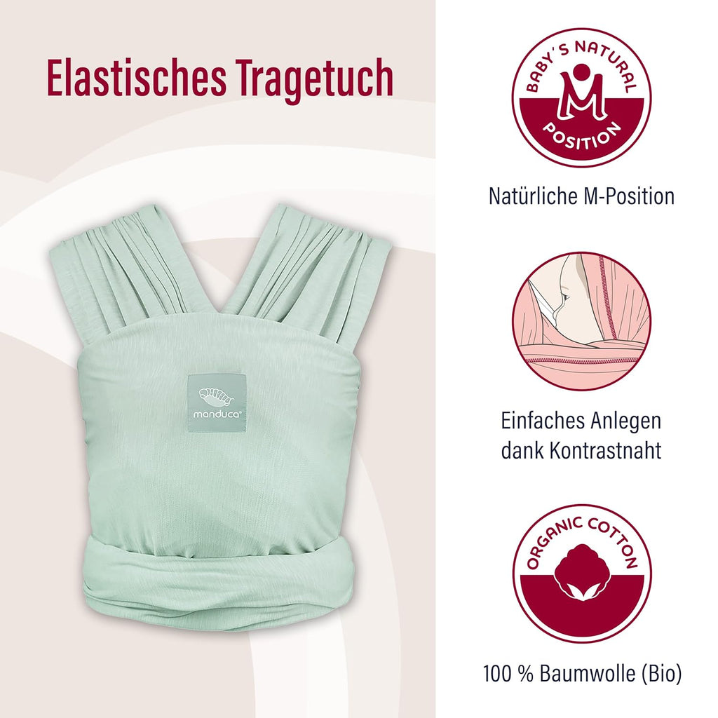 manduca Sling - Babytragetuch - Elastische Babytrage für Neugeborene von der Geburt bis zu 15 kg - Bio-Baumwolle - GOTS zertifiziert,Mint