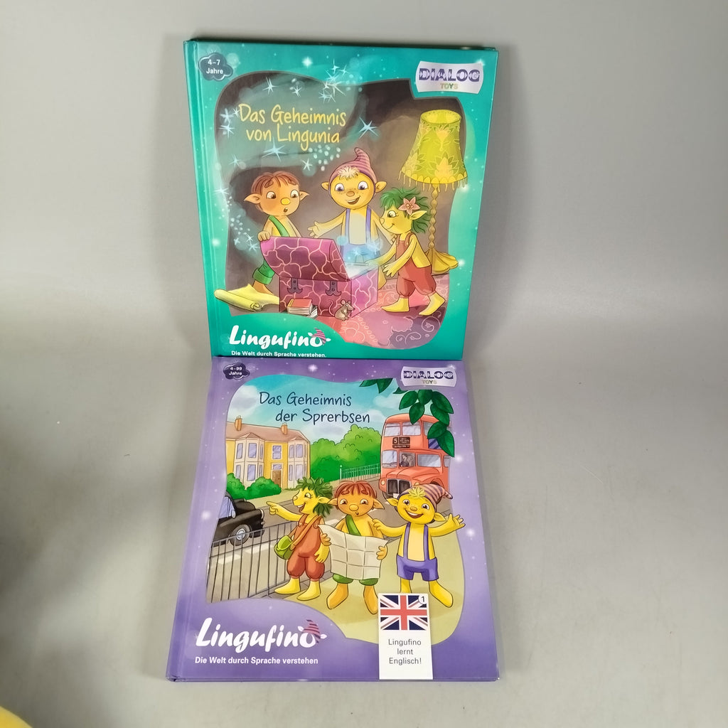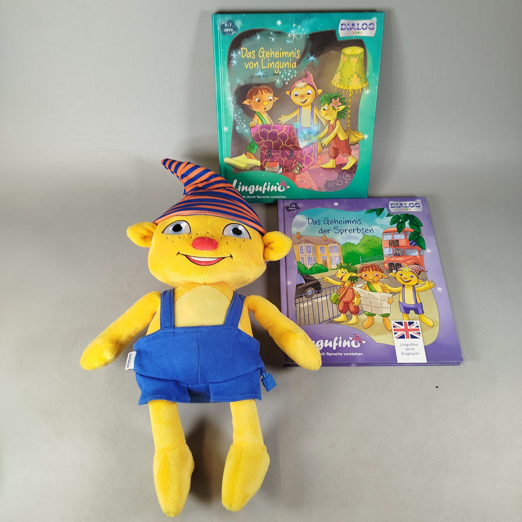 Hol dir das interaktive Sprachlern-Set von Dialog mit der Lingufino Plüschfigur und zwei Büchern „Das Geheimnis von Lingunia“ und „Das Geheimnis der Sprerbsen“. Ideal für Kinder von 4 bis 7 Jahren, um spielerisch Sprachverständnis zu fördern. Die Verpackung fehlt, das Set zeigt nur geringe Gebrauchsspuren. Die Vollständigkeit konnte nicht überprüft werden. Gib diesem Lernspielzeug ein zweites Leben und fördere nachhaltiges Spielen!