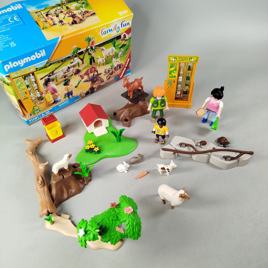 Hol dir das Playmobil Erlebnis-Streichelzoo Spielset und bring lebendiges Landleben ins Kinderzimmer! Das Set zeigt einen liebevoll gestalteten Streichelzoo mit mehreren Spielfiguren, verschiedenen Tieren und passendem Zubehör rund um Pflege und Fütterung. Kinder können Alltagsszenen nachspielen und eigene Geschichten erfinden. Gib diesem Spielzeug ein neues Zuhause und verlängere seinen Lebenszyklus. Empfohlen für Kinder ab ca. 4 Jahren. Hinweis gemäß GPSR: Enthält Kleinteile, nicht geeignet für Kinder unter 3 Jahren – Erstickungsgefahr.