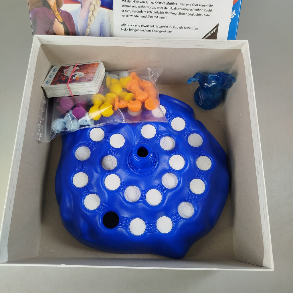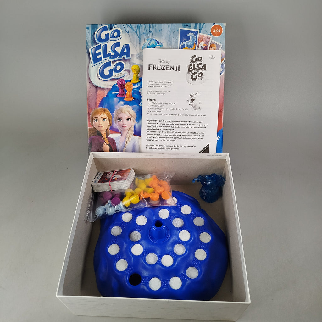 Hol dir das Go Elsa Go Brettspiel von Ravensburger und tauche in die Welt von Disney Frozen II ein! Das farbenfrohe Kinderspiel bietet ein 3D-Spielbrett mit Drehscheibe, Spielfiguren und Karten und lädt zu kurzen, spannenden Runden ein. Geeignet für 2–4 Spieler ab 4 Jahren und mit einer Spielzeit von etwa 15–20 Minuten. Gib diesem Spielzeug ein neues Zuhause und schenke ihm ein zweites Leben. Sicherheitshinweis gemäß GPSR: Enthält Kleinteile, nicht geeignet für Kinder unter 3 Jahren.