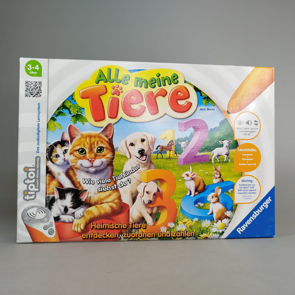 Hol dir das interaktive Lernspiel „Alle meine Tiere“ von Ravensburger tiptoi und entdecke die Welt der Tiere auf spielerische Weise. Kinder lernen Zahlen, Tiere und deren Lebensräume kennen, während sie zählen, sortieren und entdecken. Das Spiel befindet sich in neuwertigem Zustand und kommt in der Originalverpackung mit Anleitung. Gib diesem Lernspiel ein neues Zuhause und fördere spielerisch Wissen und Spaß!