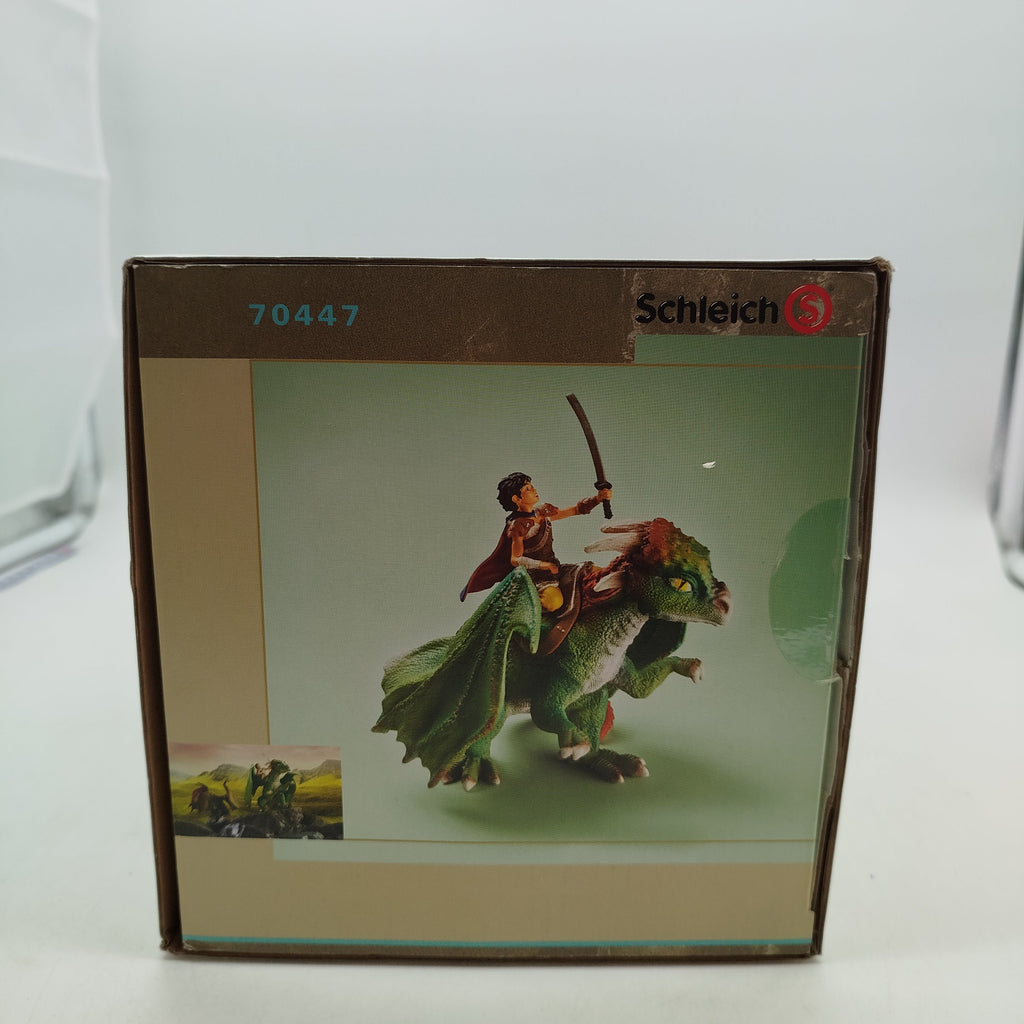 Hol dir den fantasievollen Schleich Drachenreiter Kishay und tauche ein in die magische Bayala-Welt! Dieses Einzelspielzeug besteht aus zwei Figuren: einem grünen Drachen mit Sattel sowie der humanoiden Reiterfigur Kishay, die ein Schwert in der Hand hält. Das Spielzeug ist ideal für fantasievolle Rollenspiele rund um Drachen, Abenteuer und Fabelwesen und eignet sich perfekt zum Sammeln oder Bespielen. Die Figuren kommen in der originalen Schleich-Kartonverpackung und sind schön präsentiert. Gib diesem tollen Spielzeug ein neues Zuhause und schenke ihm ein zweites Leben mit vielen neuen Abenteuern. Der Lieferumfang umfasst genau einen Drachen und eine Reiterfigur. Das Spielzeug befindet sich in einem sehr guten gebrauchten Zustand. Es handelt sich um ein gebrauchtes Spielzeug. Die Vollständigkeit ist gegeben. Sicherheitshinweis gemäß GPSR: Enthält Kleinteile, nicht geeignet für Kinder unter 3 Jahren, Erstickungsgefahr!