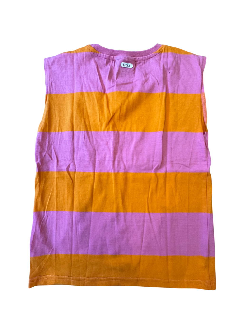 Dieses lässige Tank Top von Retour besticht durch seine rosa und orangefarbenen Blockstreifen. Perfekt für dein trendiges Kind, das Wert auf hochwertige Secondhand-Qualität legt. Die atmungsaktive Baumwolle sorgt für hohen Tragekomfort bei warmen Temperaturen.