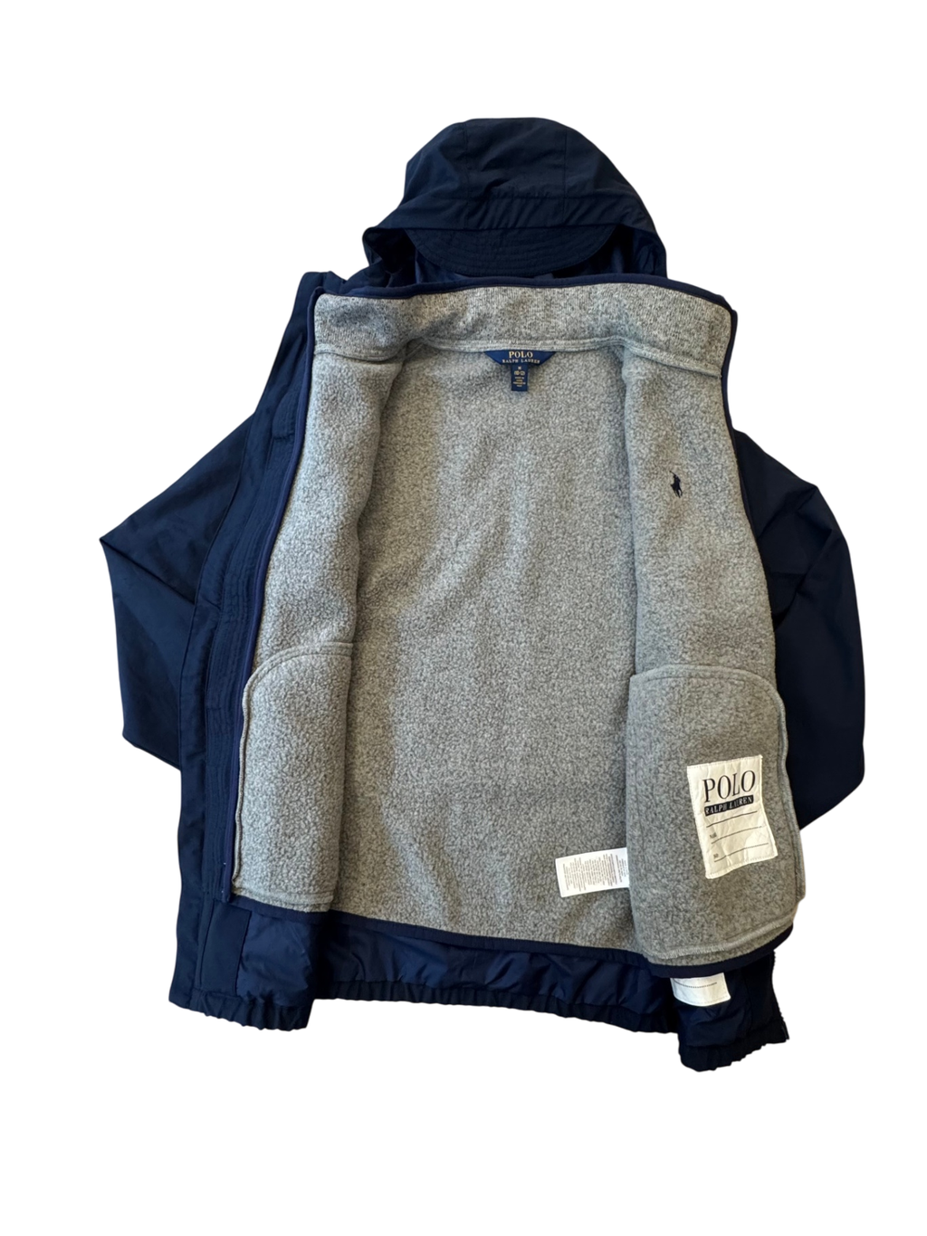 Diese trendige 3-in-1 Layer Regenjacke & Fleeceweste von Ralph Lauren in dunkelblau und grau ist das Must-Have für dein Kind! Die Größe 152 passt perfekt und lässt dein Kind stylisch aussehen. Die hochwertige Qualität des Materials sorgt für angenehmen Tragekomfort. Perfekt für aktive Jungs, die auch bei Regenwetter gut geschützt sind. Hol dir diese Jacke für deinen Sohn und sei bereit für jedes Abenteuer! NP: 279 €