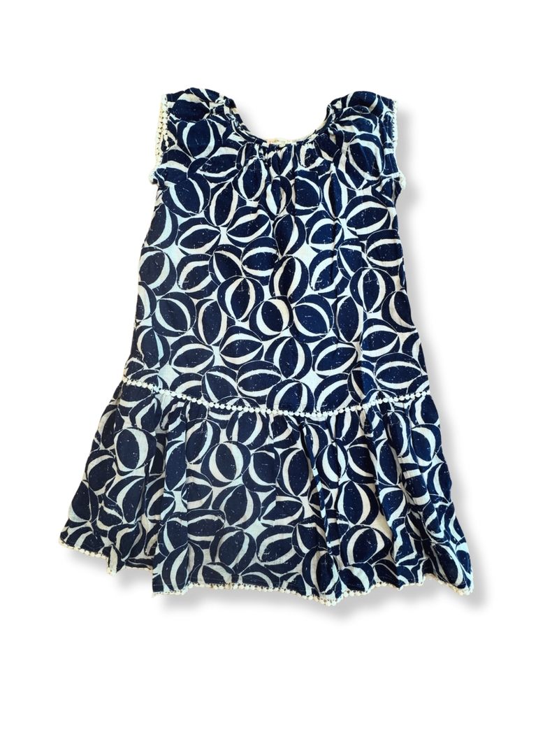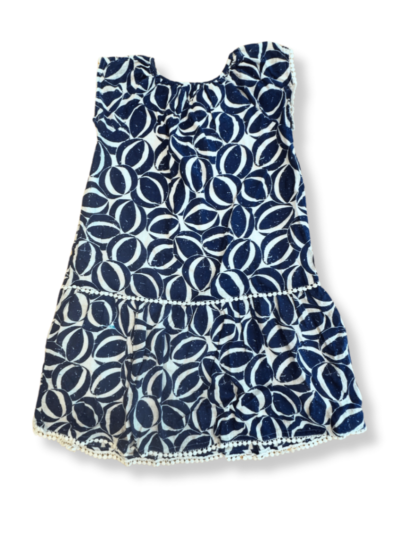 Dieses Kleid besticht durch sein lebendiges Muster in Blau und Weiß. Der lockere Schnitt und die geschwungene Silhouette sorgen für eine bequeme Passform. Das angenehme Material macht es ideal für warme Tage und legere Anlässe.