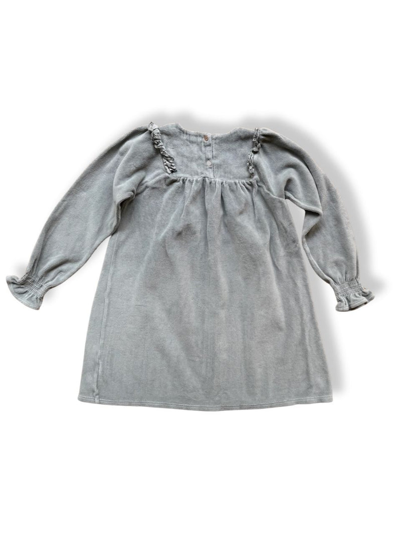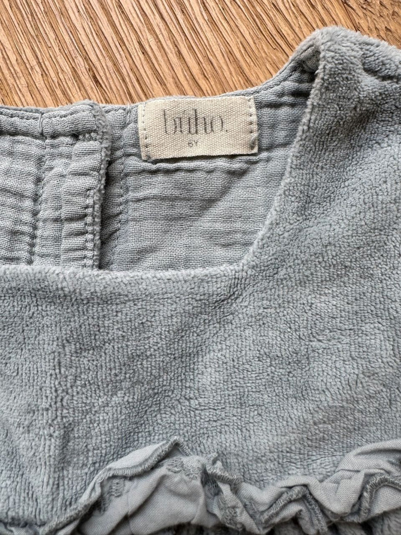 Hier kommt ein wunderschönes buho Kleid in der Farbe Salbei, Größe 6. Ein zauberhaftes Einzelstück, das die Garderobe eures Kindes uf ein neues Level hebt. S