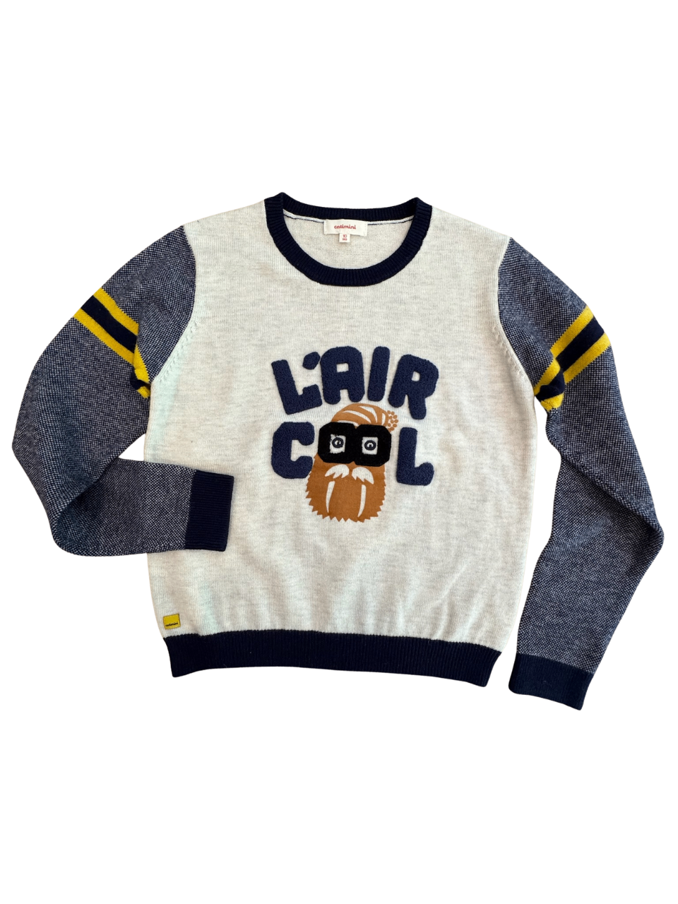 Dieses hochwertige, second-hand Kinderpullover von Caminini ist perfekt für gemütliche Tage. Das coole Design mit der Aufschrift 'L'AIR COOL' und lustigem Tier-Motiv macht es zu einem echten Hingucker. Es ist in einer angenehmen Größe für kleine Abenteurer und bietet warmen Komfort in stilvollem Look. Ideal für Mütter, die Wert auf nachhaltige und angesagte Kinderbekleidung legen.