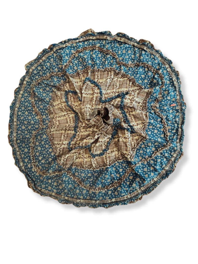 Ein verspielter Rock mit romantischem Vintage-Charme. Perfekt für einen sonnigen Tag, kombiniert er Muster und Farben, die sowohl sommerlich als auch einzigartig sind. Mit elastischem Bund für bequemen Sitz. Das florale Design und die Kombination aus Blau und Beige verleihen ihm einen Hauch von Nostalgie.