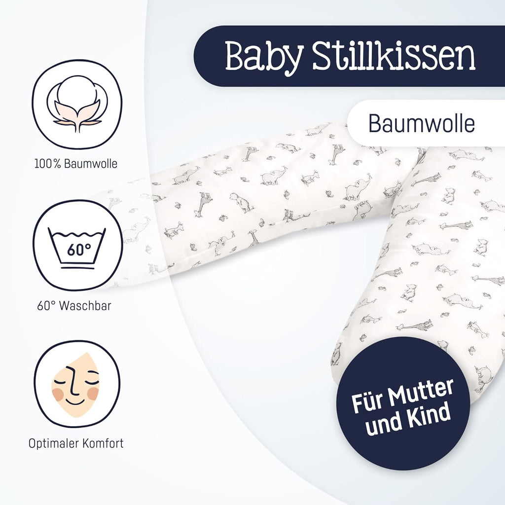 Julius Zöllner 4670016100 Stillkissen mit Perlenfüllung , bedruckte Baumwolle, Safari, 190 cm