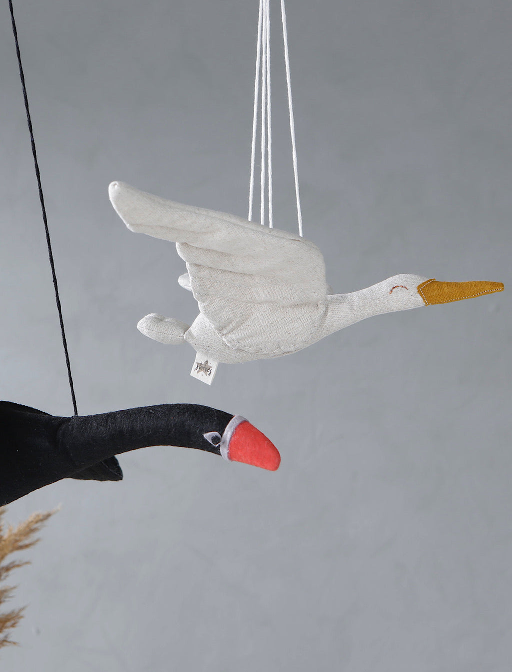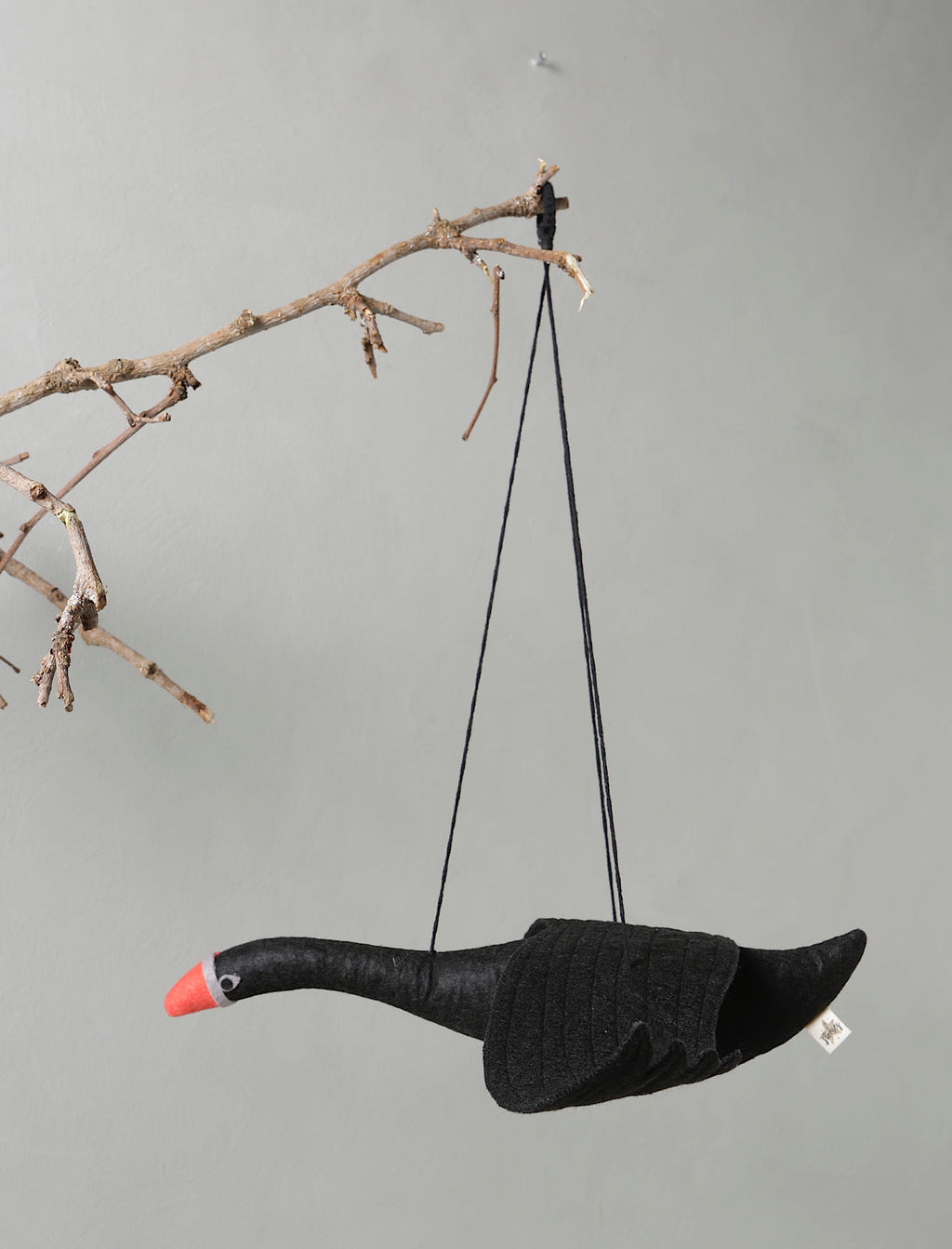 Ein schöner schwarzer Schwan als Hängedeko aus Filz.