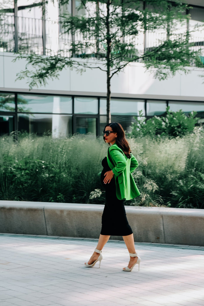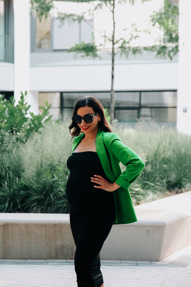 Grün ist die Trendfarbe des Jahres und dieser Blazer aus nachhaltigem Leinen-Tencel macht es dir besonders leicht auch in der Schwangerschaft mal gewissen Trends zu frönen :) Viel Spaß beim Tragen!
