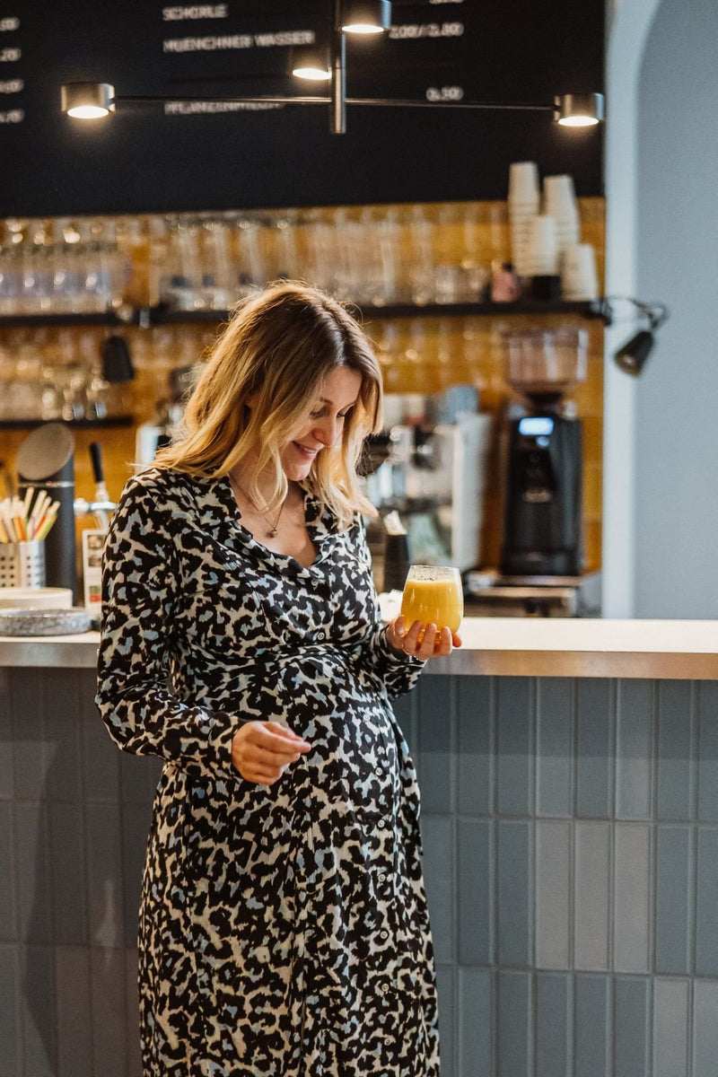 Kelsey ist butterweich, geschmeidig und fließend. Das Mantelkleid mit durchgehender Knopfleiste vorne, wird über deinem Babybauch gebunden, um dir die perfekte Silhouette zu verleihen und deinen Babybauch in Szene zu setzen. Durch den Blusenkragen und die Midi-länge ist das Kelsey Kleid ein Allrounder egal was du vorhast! Der Leoparden Print in blau/weiß/schwarz gibt diesem Klassiker das gewisse je ne sais quoi.