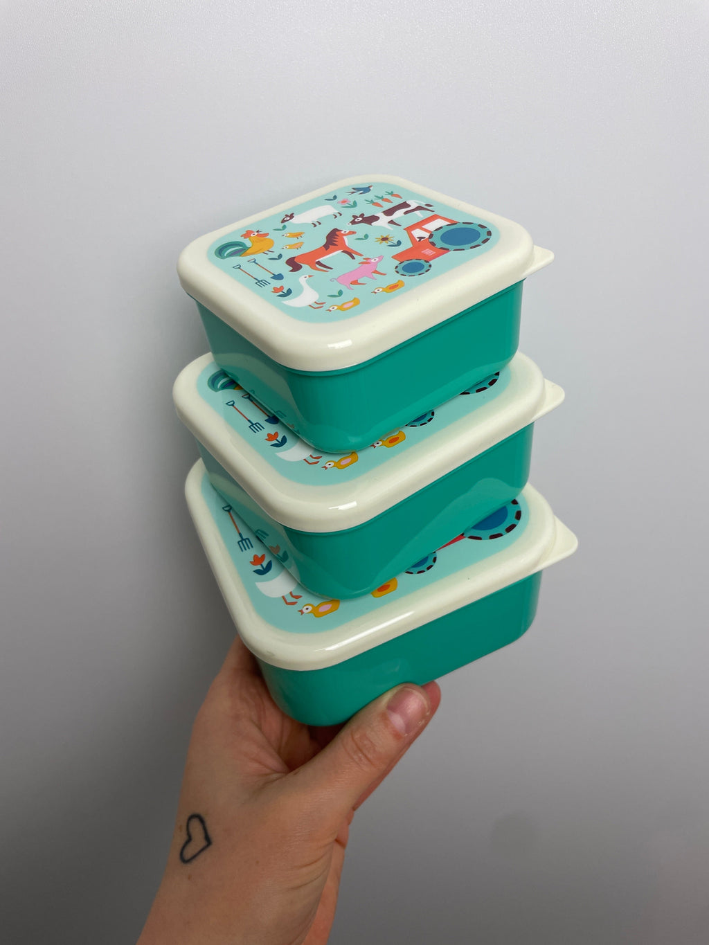 Ein wundervolles Set mit drei ineinander stapelbaren Snackdosen
